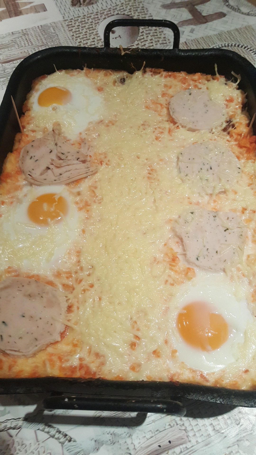 Poser ce cercle de jambon sur le cercle formé sur la purée ou mettre un oeuf.